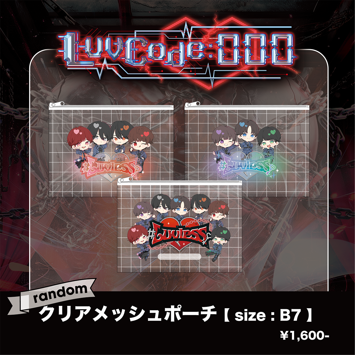 【#Luvless】お披露目グッズ クリアメッシュポーチ(全3種/ランダム)