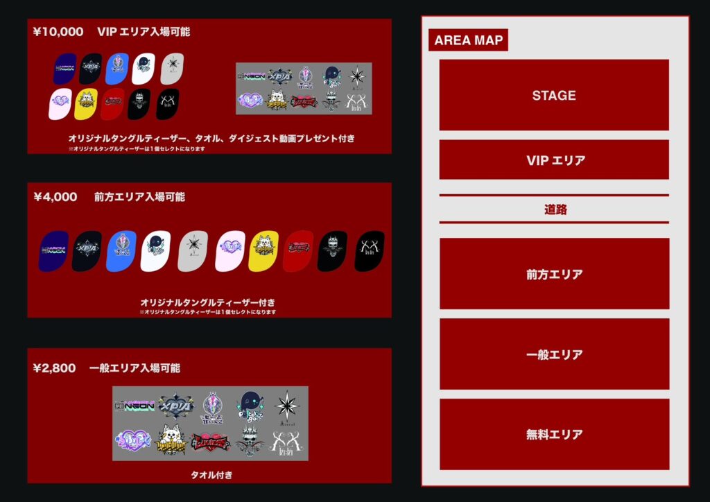・VIPエリア:VIPセット購入者(オリジナルタングルティーザー、タオル、ダイジェスト動画)(10,000円)